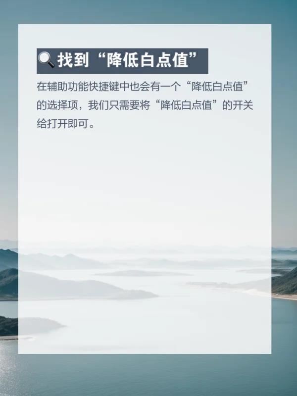 在辅助功能快捷键中也会有一个降低白点值的选择项,我们只需要将降低白点值的开关给打开即可